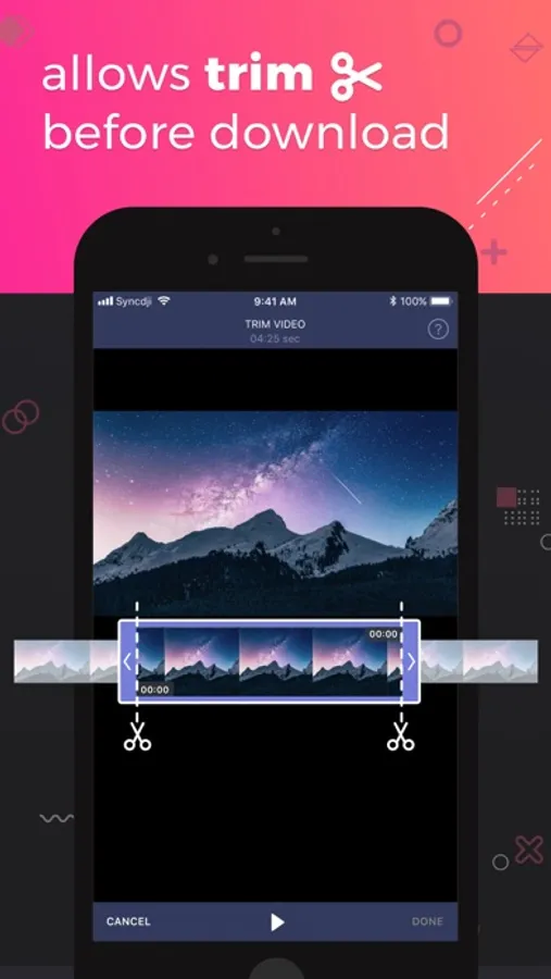 TRIM BEFORE DOWNLOAD - we have the technology to trim parts of video directly from device memory. So, you download only nice pieces drastically reducing needed time and battery(especially for long 4K videos).