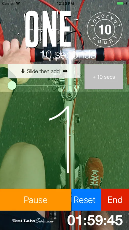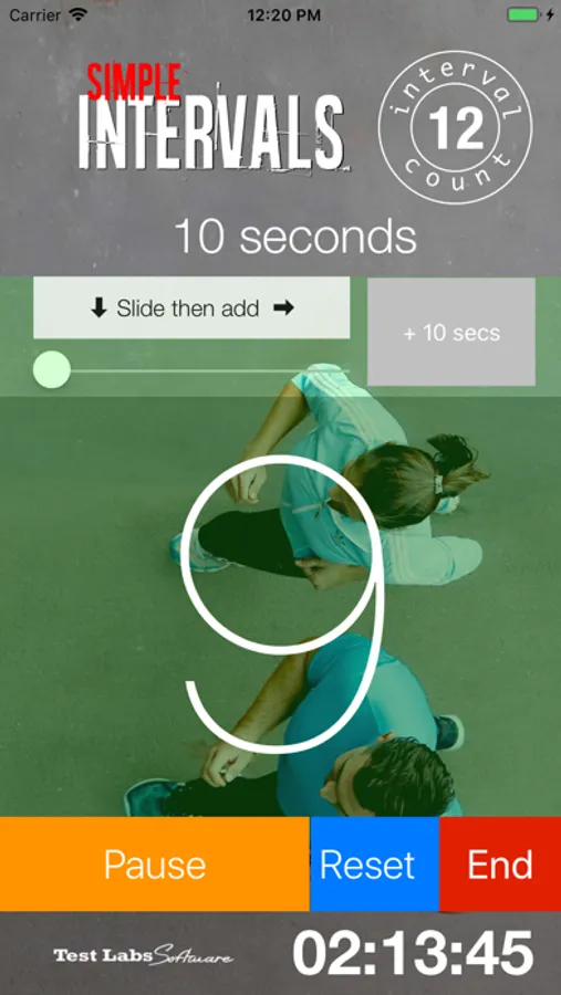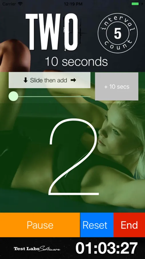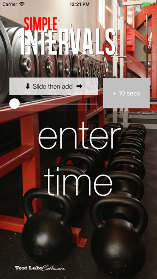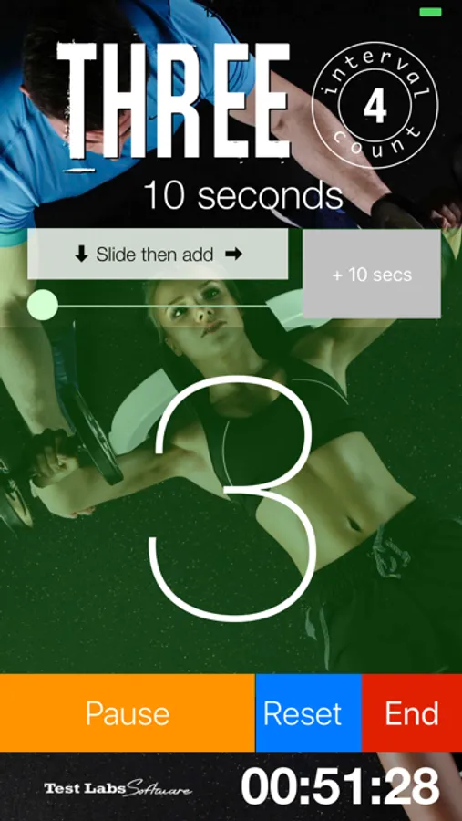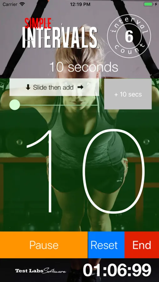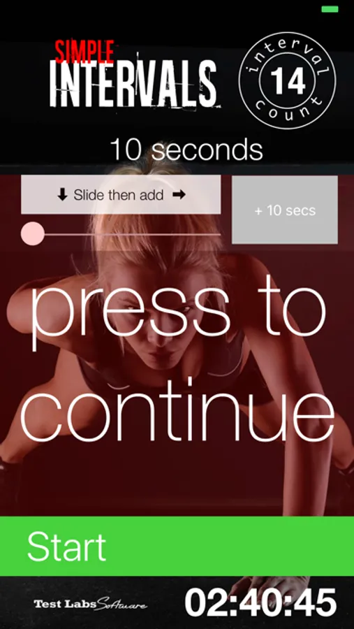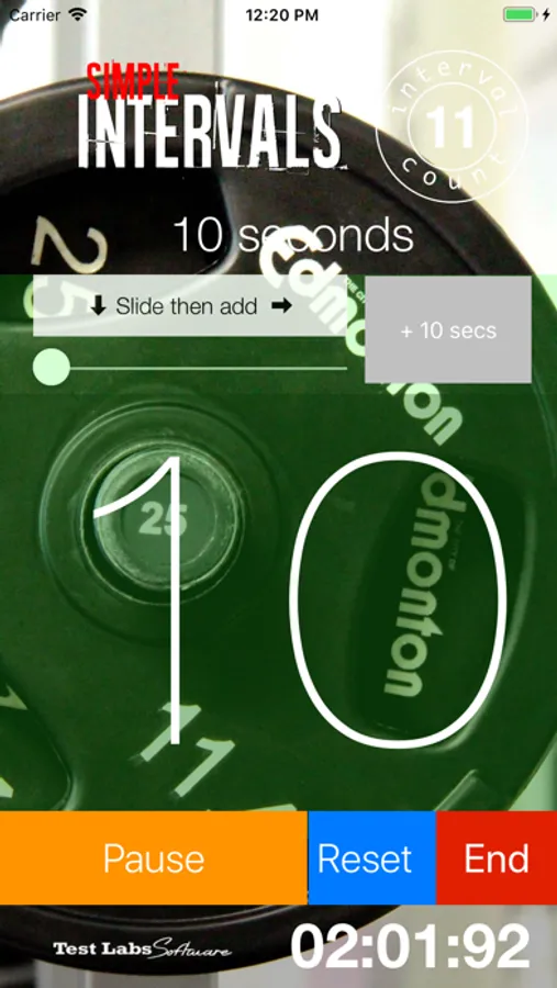 To use, simply slide the slider control to the desired interval length or press the Add 10 seconds button and press START!