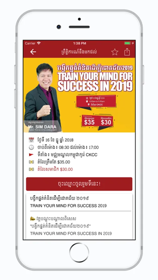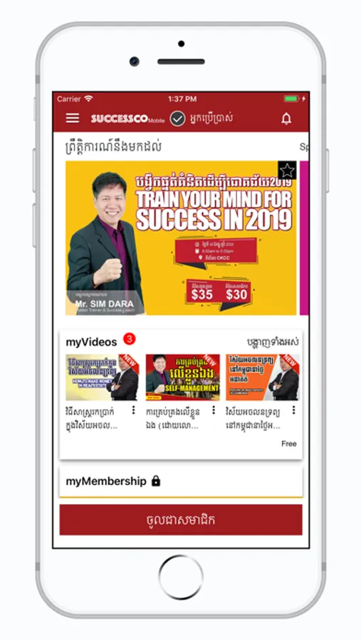 SiM DARA App is developed to serve its users, and members by providing motivational training, seminar, and other personal development programs by Sim Dara, and other Cambodian key -note-motivational speakers, trainers, and business coaches.