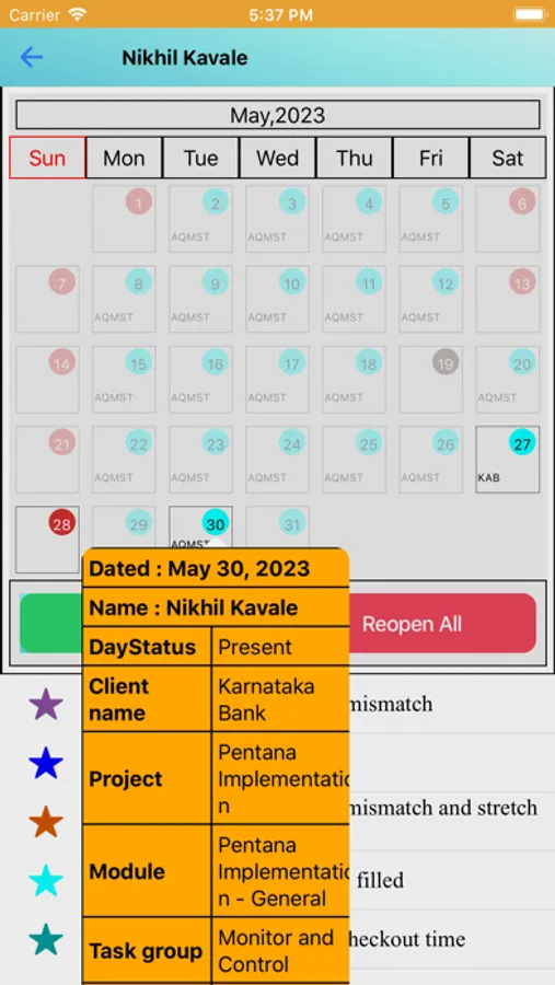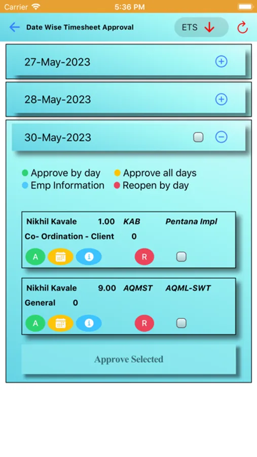 Managers can Approve timesheet daily or can reopen a single day for rectification of employee data.