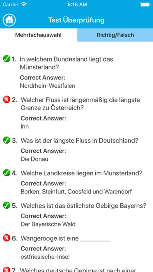 - Es gibt 2 Quiz-Modus. Multiple-Choice Quiz und Richtig/Falsch Quiz.