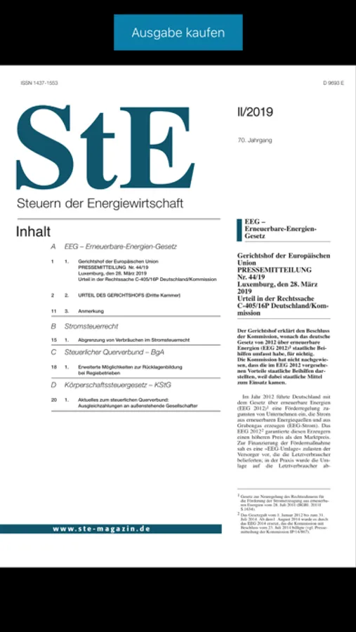 StE - Steuern der Energiewirtschaft informiert seit über 70 Jahren die Finanz-, Steuer- und Rechtsabteilungen in der Energiewirtschaft und Kanzleien über Gesetze, Verordnungen, Verwaltungsvorschriften und Rechtsprechung, die das Steuerrecht in der gesamten Versorgungswirtschaft betreffen.