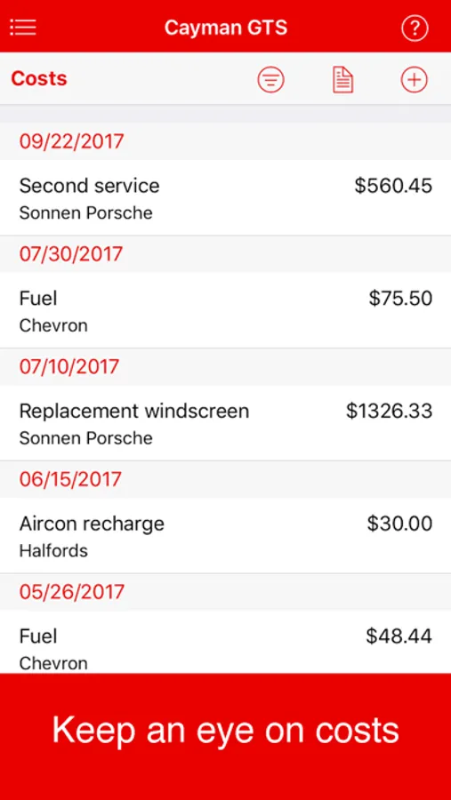 My Cars is free to download. You can make a limited number of entries in each section of the app and see if you like it. If you do, you can purchase a 12 month subscription as an in-app purchase straight from the app