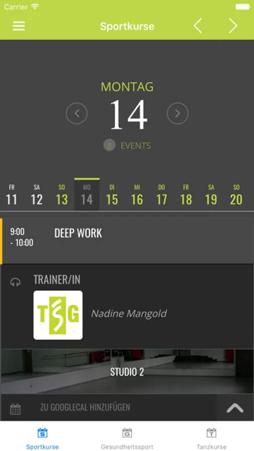 * Kurskalender: Immer auf dem neuesten Stand und sofort darüber Informiert werden, falls eine Änderung stattfinden sollte.