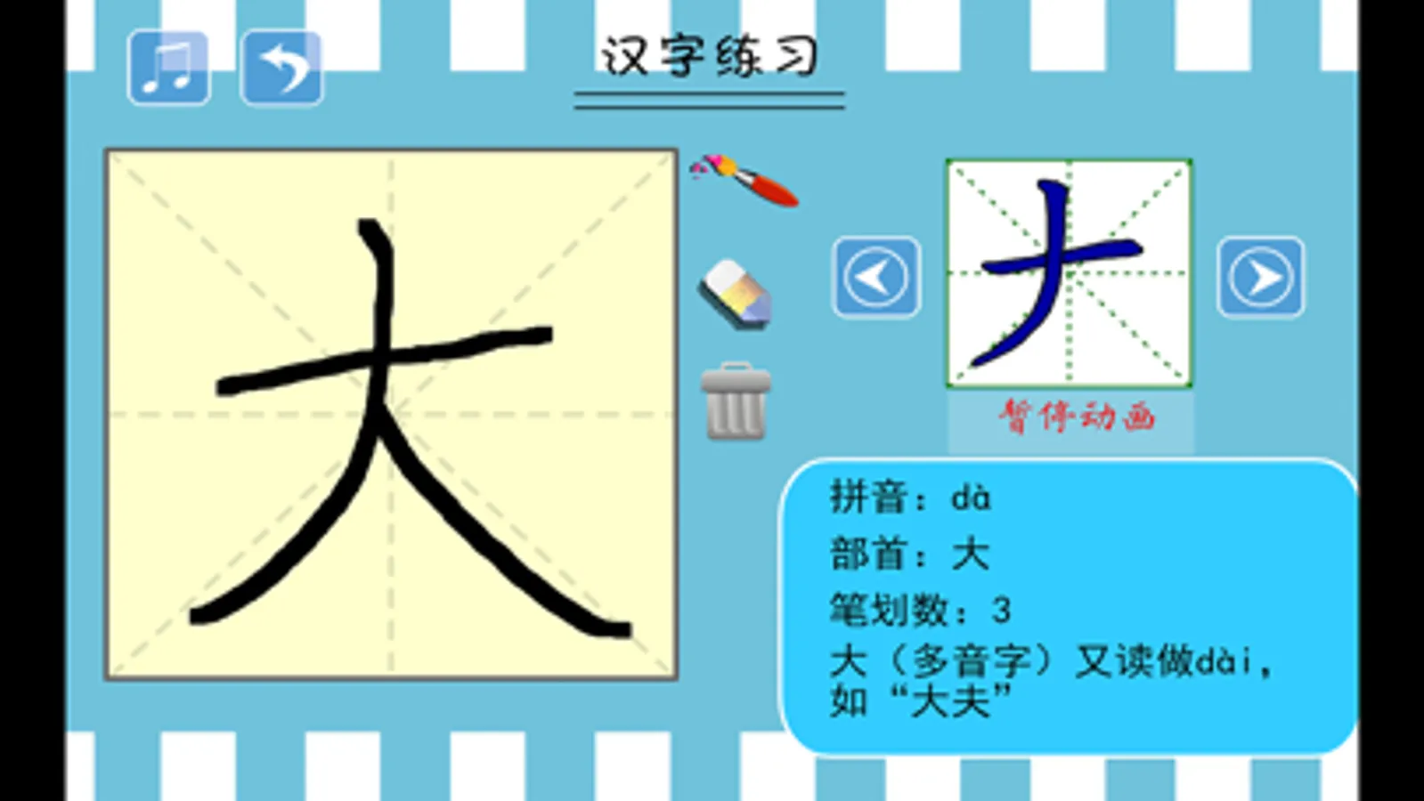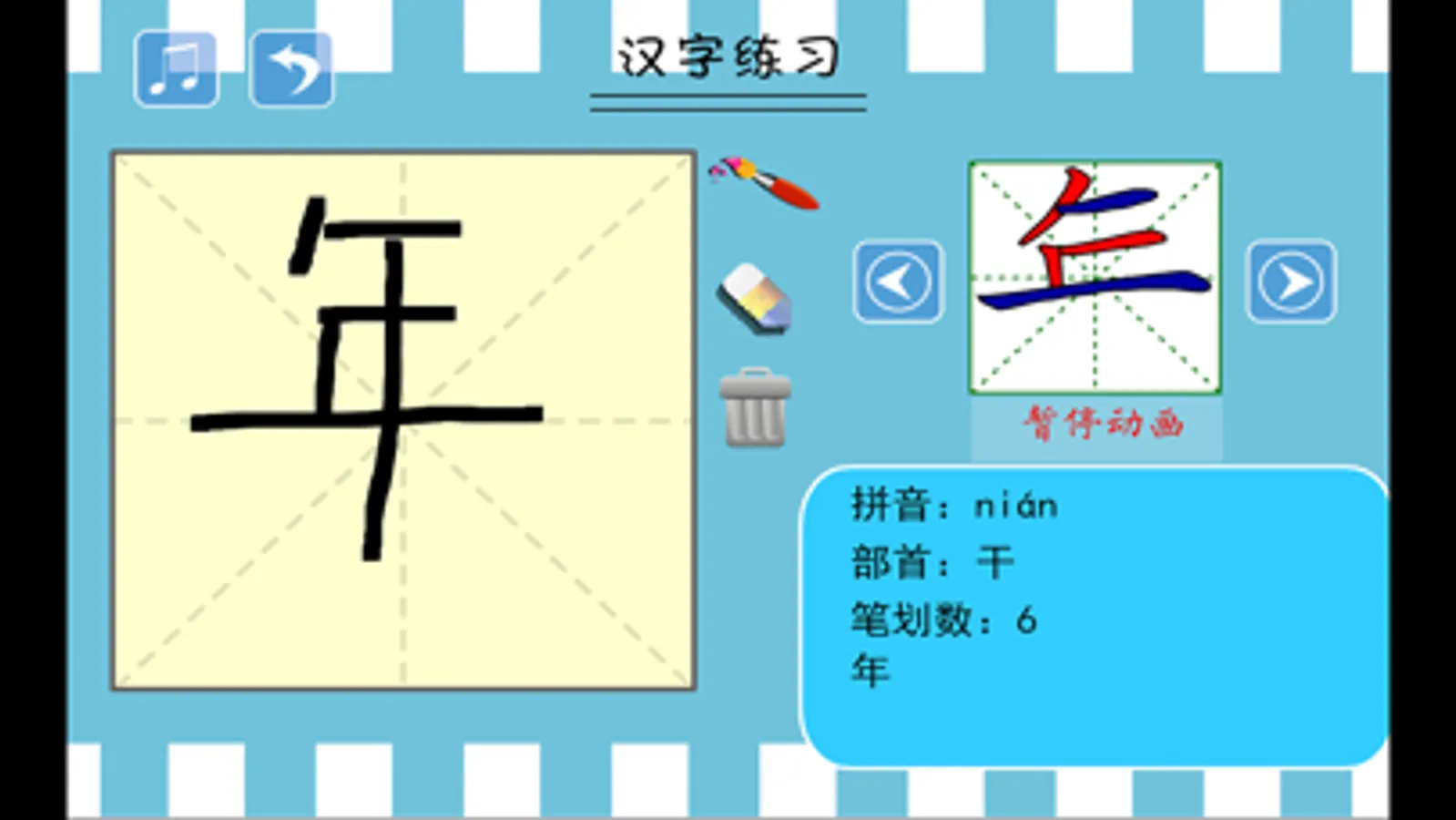 1、笔顺动画,以动画形式演示给孩子看字的书写过程。
