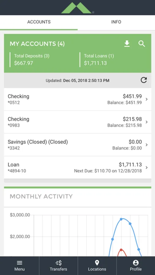 -Check your latest account balances and search recent transactions by date, amount, or check number.