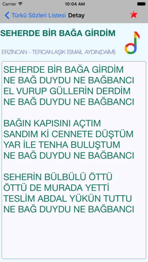 * 20 bin den fazla türkü sözünü bu uygulamada offline olarak internet ihtiyacı duymadan görebileceksiniz.