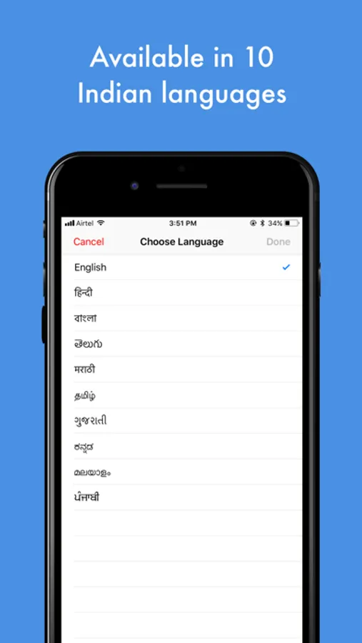 - Search via text or voice. Available in English, Hindi and 8 more local languages