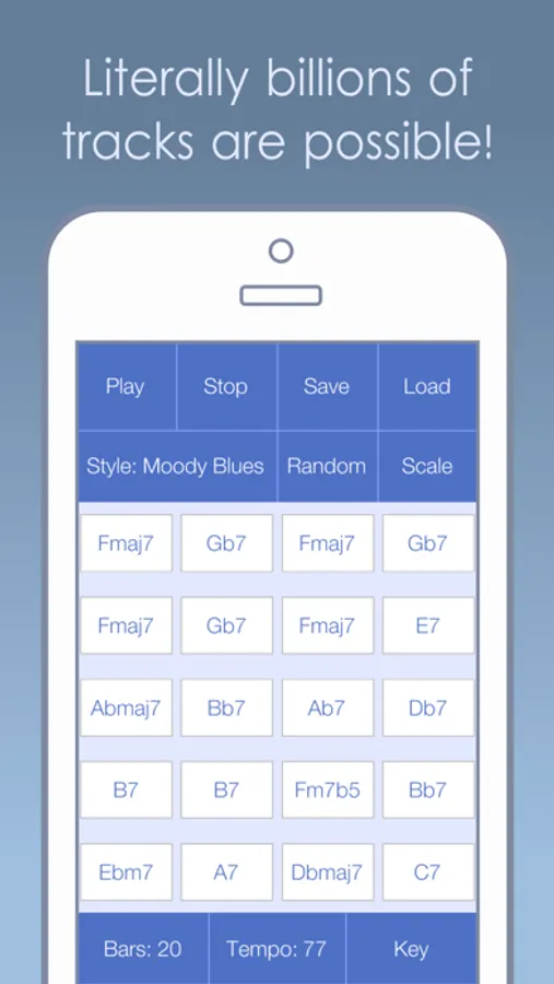 Create you own custom jam tracks. Pick your chords, tempo and style and let Backing Track Builder do the rest!