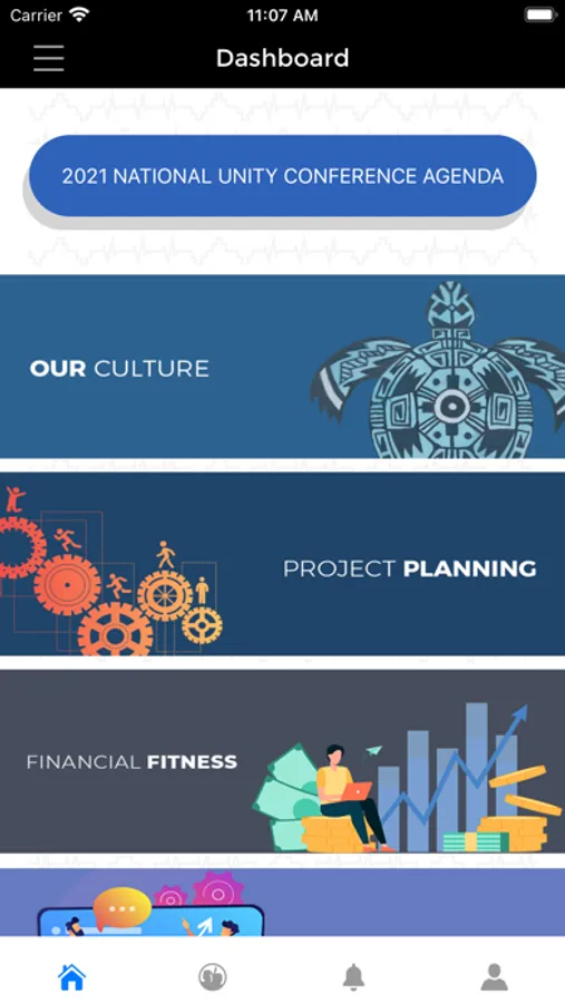 UNITY’s Wellness Warrior app is designed to encourage American Indian people in living healthier lifestyles, through cultural approaches. There are several sections that make up the app as a whole, which include a Wellness Tracker, a Fitness time tracker, Culture sharing around the Regional UNITY fires, and a project planning template. The App will be designed in getting the users to be interactive in the app, through several challenges in order to obtain the status of a “Wellness Warrior.”