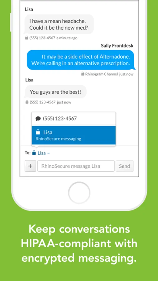 Great healthcare takes great conversation. Enter Rhinogram, the HIPAA-compliant conversation kit. Rhinogram lets healthcare teams text and securely message with patients and teammates. With SMS/MMS, integrated Facebook messaging, and an encrypted channel, Rhinogram powers efficient conversations, and ensures the safe exchange of ePHI in any form. Rhinogram is available on any device, so you, your team, and your patients can converse from anywhere.