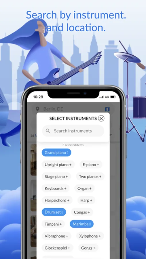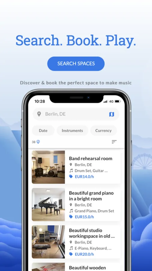 Book your own music space around the world. Access to unique spaces, practice rooms, rehearsal rooms, recording studios, dance studios, halls and performance venues.