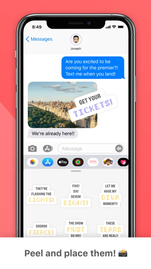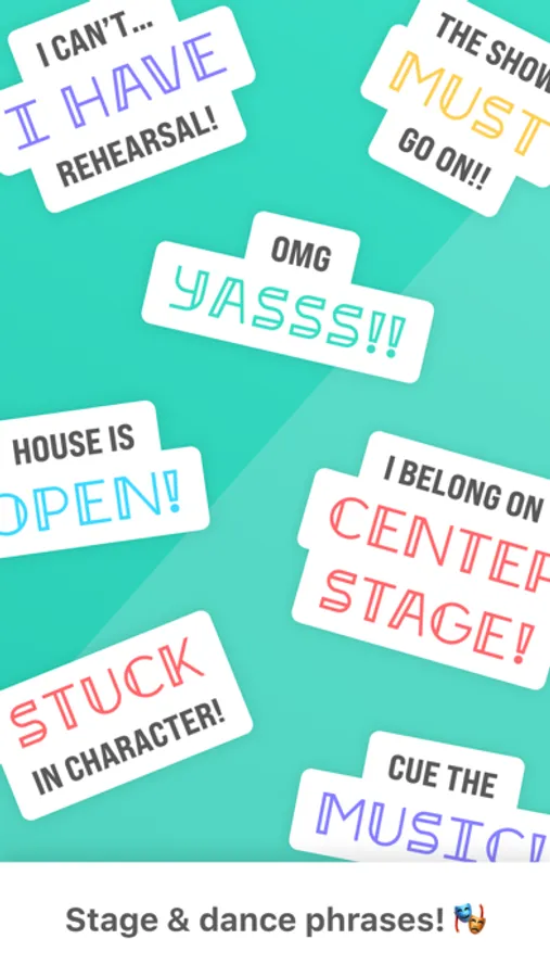 The PREMIER sticker pack for fans of the stage... make your messages FIERCE! These 35 sticker phrases are inspired by a passion for acting, theatre, dance, and the stage.