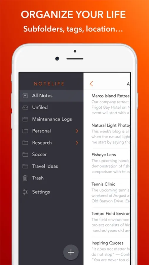 Notelife is a premium note manager designed for the rest of us. While it goes beyond the basics, it isn't hard to use. You don't have to remember any obscure formatting codes (like Markdown syntax) to format your notes. Nor do you have to have a degree in engineering to sync your notes between all of your devices. Rather, Notelife makes it effortless to store anything and find anything, fast!