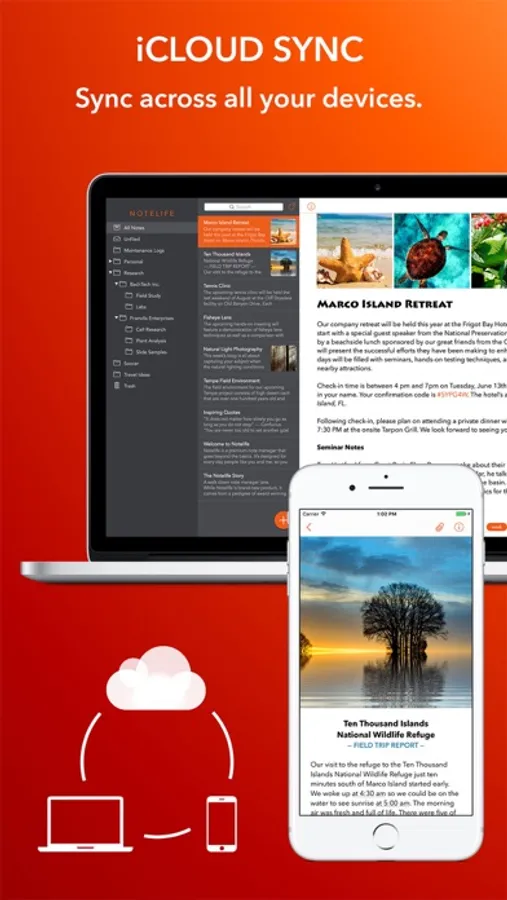 Notelife seamlessly syncs your notes between all of your devices using Apple's iCloud technology. This means that you don't have to trust your private information to yet another 3rd party. Oh, and did we mention that it's really fast!