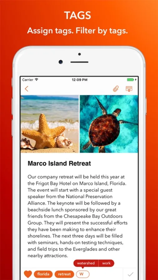 Tags & Favorites provide another way to categorize your notes. The best thing about tags is you can use them to filter your notes.