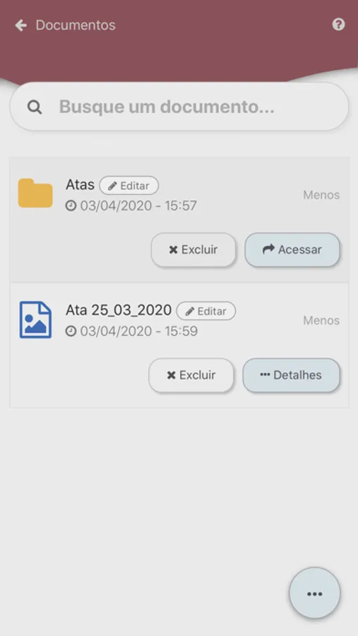 Documentos: A equipe administrativa ainda pode armazenar arquivos importantes ao Condomínio diretamente no App. Assim, moradores poderão ter acesso a informações ainda mais sensíveis sempre que necessário. A administração pode ainda criar diretórios e atribuir permissões de acesso de acordo com a necessidade;