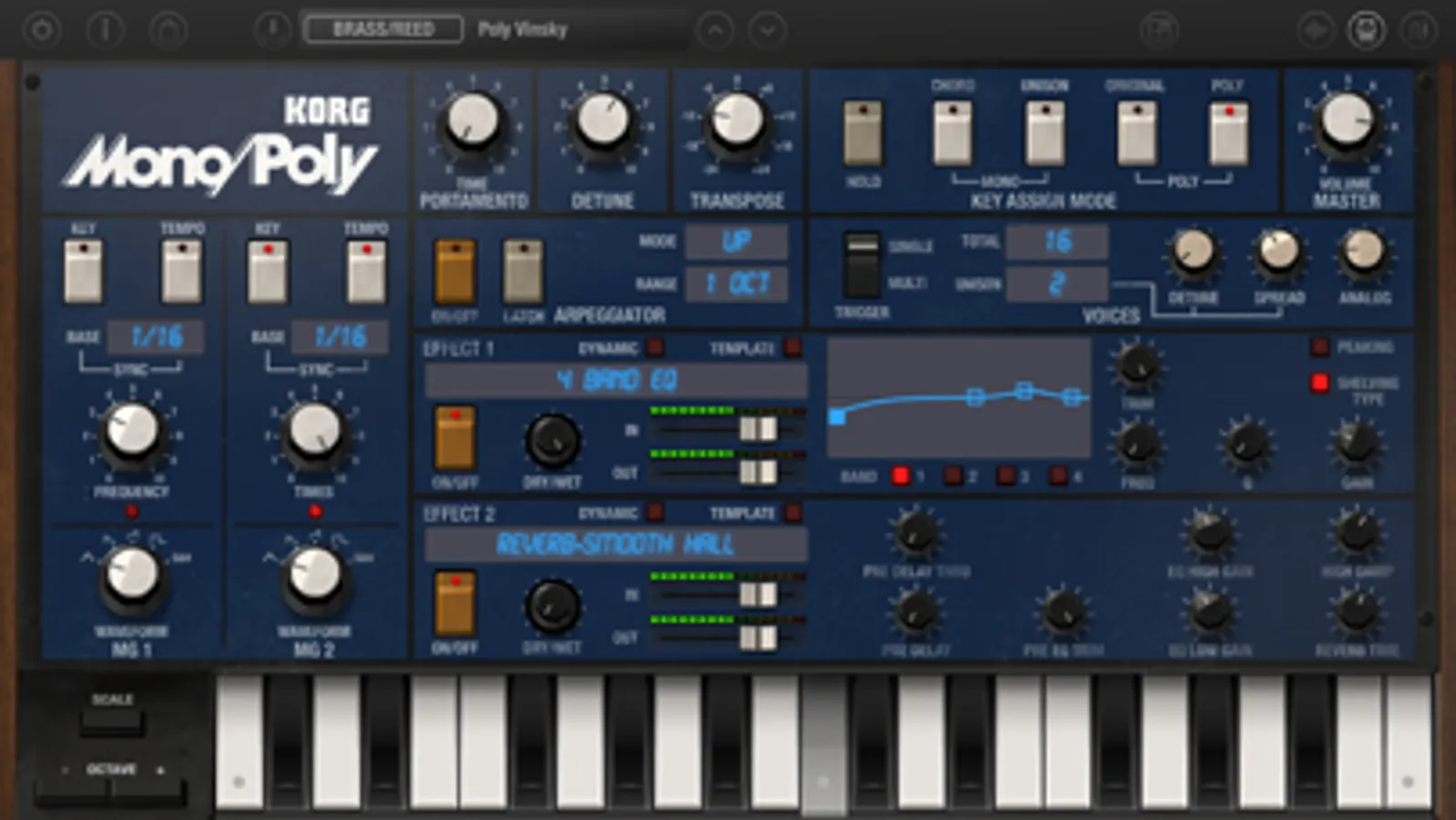 The long-awaited “KORG iMono/Poly” iPad/iPhone app completely reproduces all features of the original Mono/Poly. Four VCOs and a rich array of modulation allow a wide range of detailed sound design. New functionality such as two multi-effects units and eight virtual patches are also provided. In addition, the seamless integration that you expect from KORG’s iOS apps will fit perfectly into your music making process. The Mono/Poly has been reborn for today’s world, bringing you a unique and legendary sound.