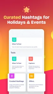 ● Curated Hashtags - holidays and other big events are some of the most active times on social media, especially for businesses. That's why we prepare curated lists of the top trending hashtags for events like Thanksgiving, New Years, and other holidays.