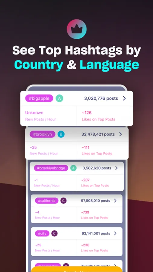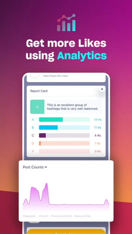 ● Performance - see some of the most in-depth analytics on hashtags out there. We show post counts, predict how well hashtags will perform for you, and let you visualize metrics in beautiful graphs.