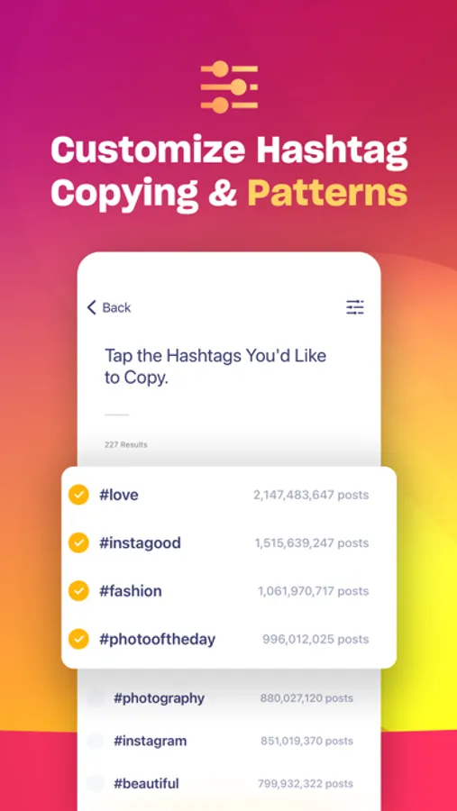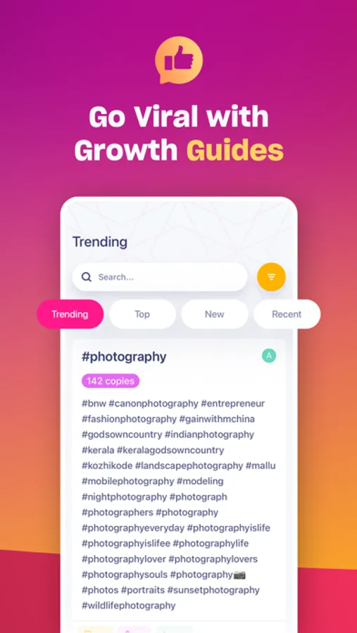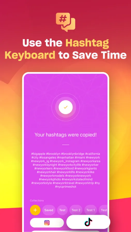 ● Keyboard - install a custom-designed Hashtag Expert keyboard that gives you quick access to our millions of hashtags. With the keyboard, you'll be quicker than ever at coming up with hashtags.