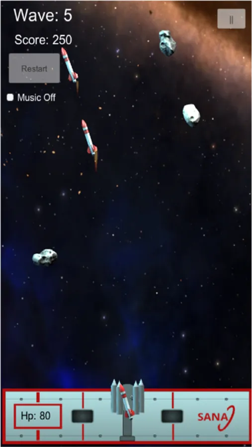 Your job is to defend your station from the growing asteroid threat. Fire your rockets and see how many waves you can withstand. SANA, The Space Administration of North America is counting on you!