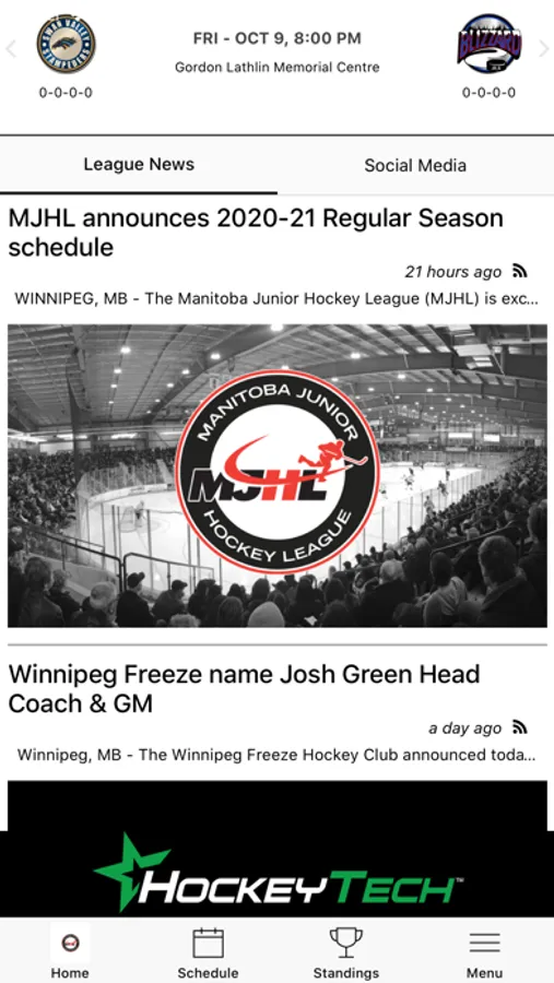 The official mobile app of the Manitoba Junior Hockey League, featuring real-time scoring data direct from each arena. Follow every game in real time with complete box scores, game summary and up to the minute player stats. The MJHL app also features past Scores, future Schedules, Standings and both player and goalie stats.