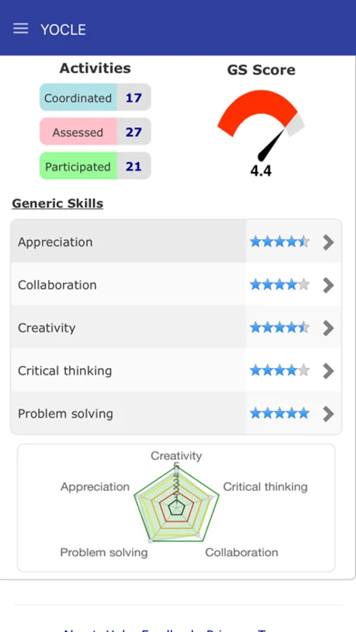 YOCLE (Your Out-of-Classroom Learning Experience) is an education-oriented platform dedicated towards supporting the development, assessment and providing evidence of student learning in their holistic competencies and generic skills. It can be used within classroom settings but is particularly useful for recording out-of-classroom learning experiences such as extracurricular activities. Students, skill assessors, and activity coordinators can set up an account on YOCLE and view the profiles of others. Through participating in activities, students have the chance to practise and enhance their generic skills. Students can keep track of their progress of skill acquirement on YOCLE and learn more about themselves in the process.