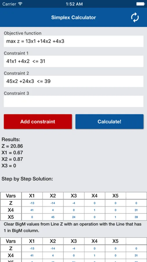 The most complete APP to solve optimization problems based on Simplex Algorithm.