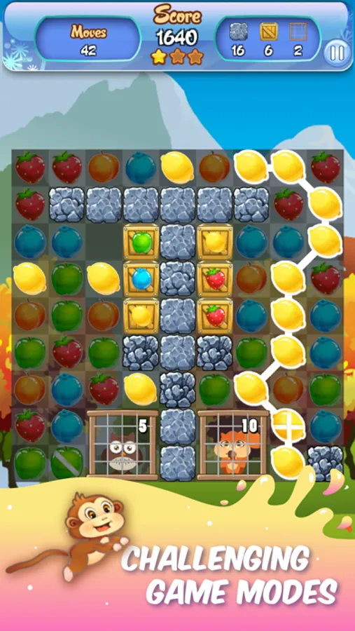 3. More than 50 kinds of sweet candy fruits and Your mission is to rescue the animals that blocked in the cage