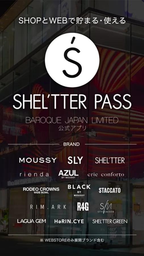 ・The STAMP CARDS,POINT CARDS,and MEMBER CARDS of the various Baroque Japan brands can all be managed in the SHEL'TTER PASS app.