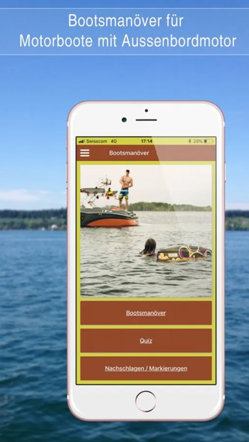 Lernsoftware für die Vorbereitung auf die praktische Prüfung für Motorboote mit Aussenbordmotor.