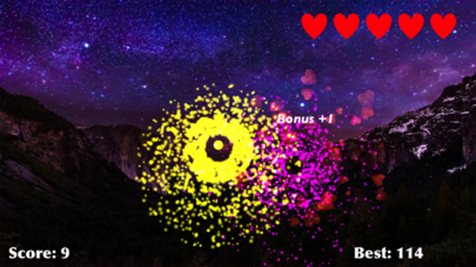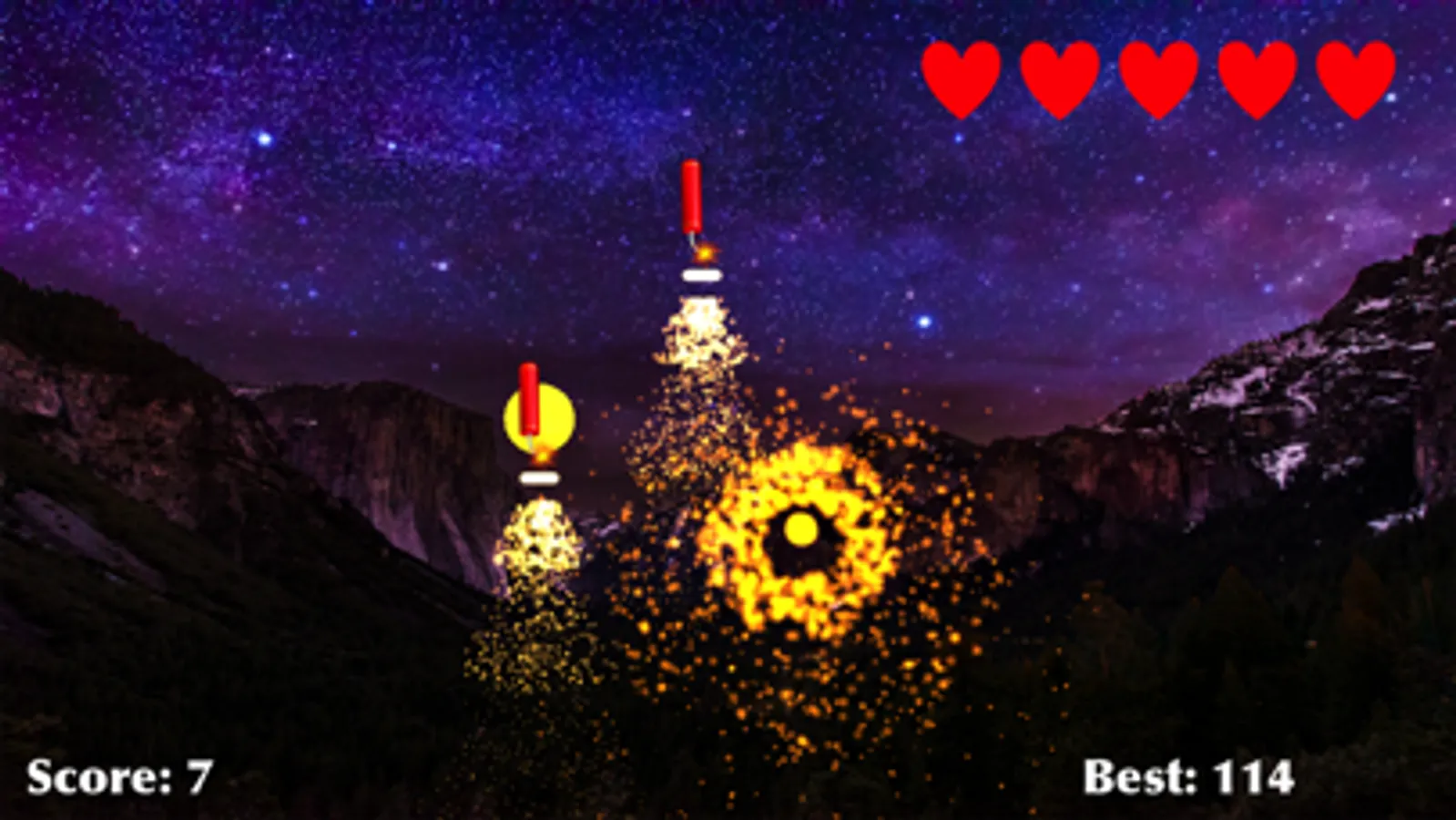 Fireworks Celebration is a fun and easy to play iOS App game for everyone. Tap on the screen to explode fireworks and score points. Try to avoid the bomb. If you miss more than 5 fireworks or hit the bomb, the game is over. The game will gradually become more difficult as you score more points. Try to score as many points as possible!