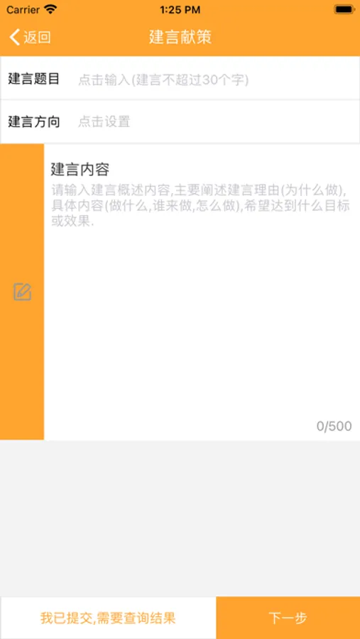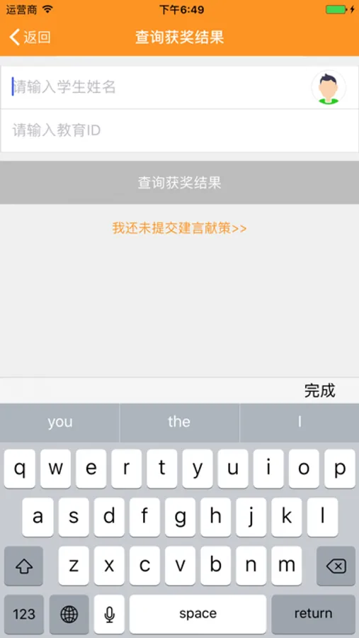 2、查询功能介绍:学生可通过自己的姓名和教育ID号查询自己的已提交的建言献策内容和评奖结果。