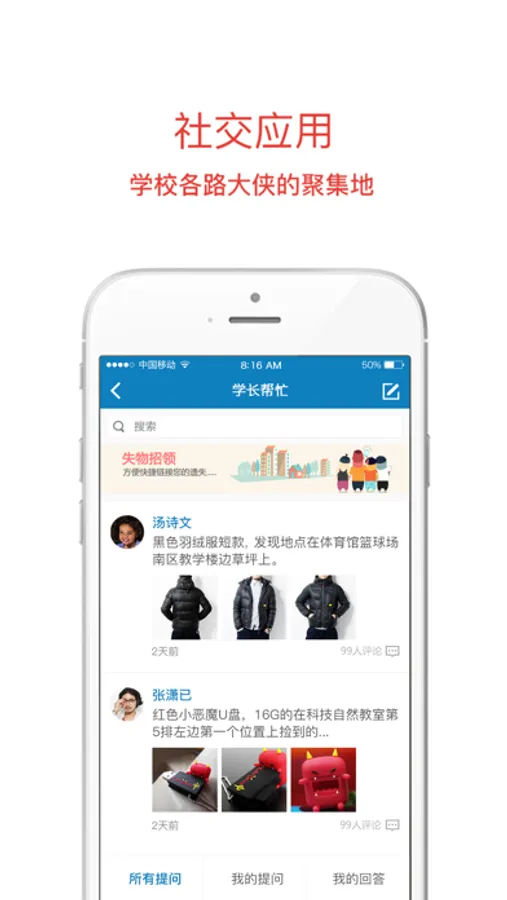 学长帮忙、失物招领,方便你的校园生活;