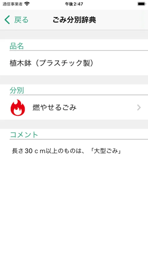 品目毎にごみの捨て方を確認できます。また、検索性の高い仕組みをつかっているため探しているモノを簡単に見つけることができます。