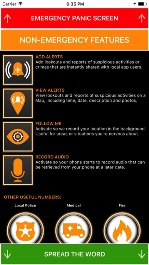 - local app users will also receive an alert showing your location, photo and name (opt in feature).