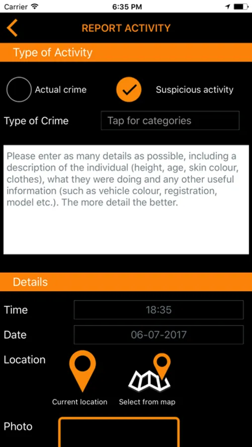 - easily report crimes and suspicious activities and automatically notify people in your community.