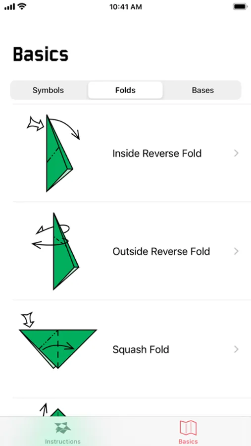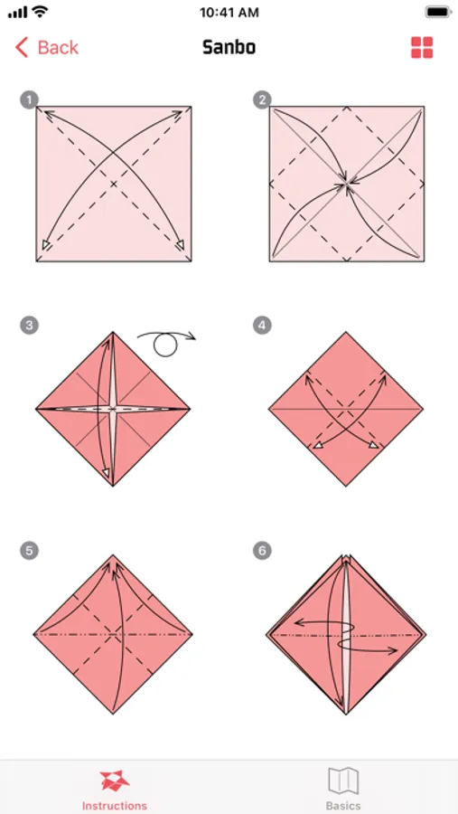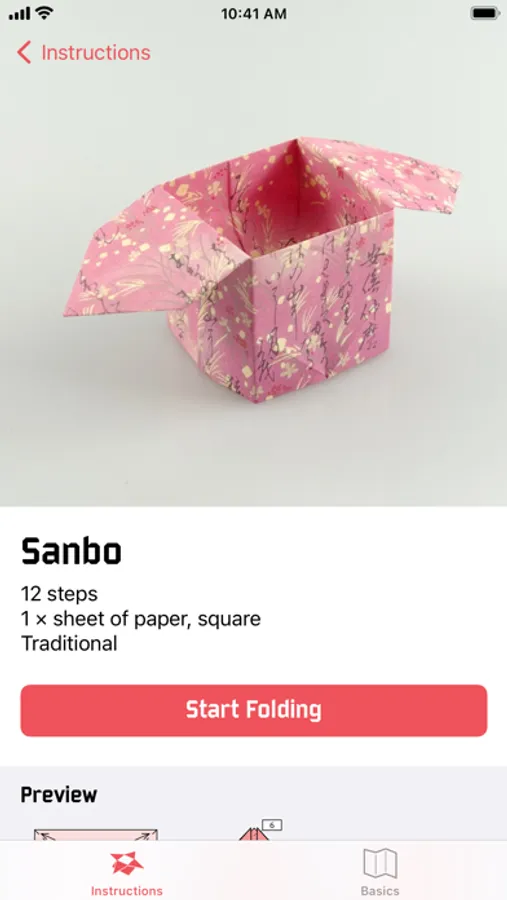 All 45 origami designs include detailed, step-by-step instructions and high-quality photos of the finished product. Each type of origami fold is shown in a precise, visual guidebook included right in the app.