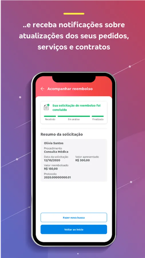 • Saúde: a sua prioridade nas mãos de quem entende de saúde. Carteirinha virtual para atendimento rápido, busca de profissionais e estabelecimentos, referenciados favoritos, solicitação de reembolso e agendamento de consultas na rede Novamed.