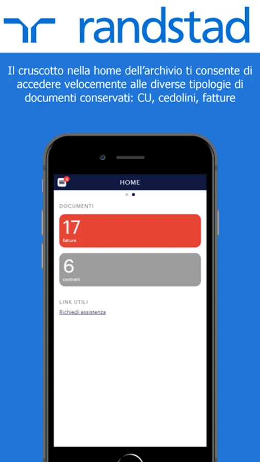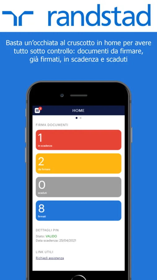 Randstad e-doc è l’app di Randstad che consente un processo di firma digitale sicura e veloce dei documenti e una facile consultazione del tuo archivio digitale di CU, cedolini e fatture.