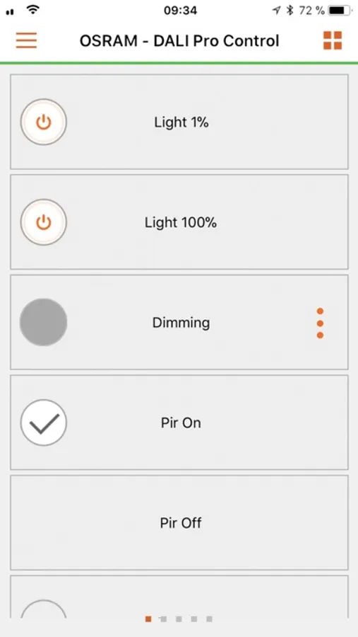 The functions of the DALI PRO Control App can be adapted with the configuration software of the OSRAM DALI PROFESSIONAL System as requested. Multiple user can parallel connect to the control. The single views can be configured individually for each user.
