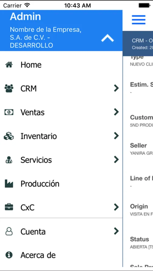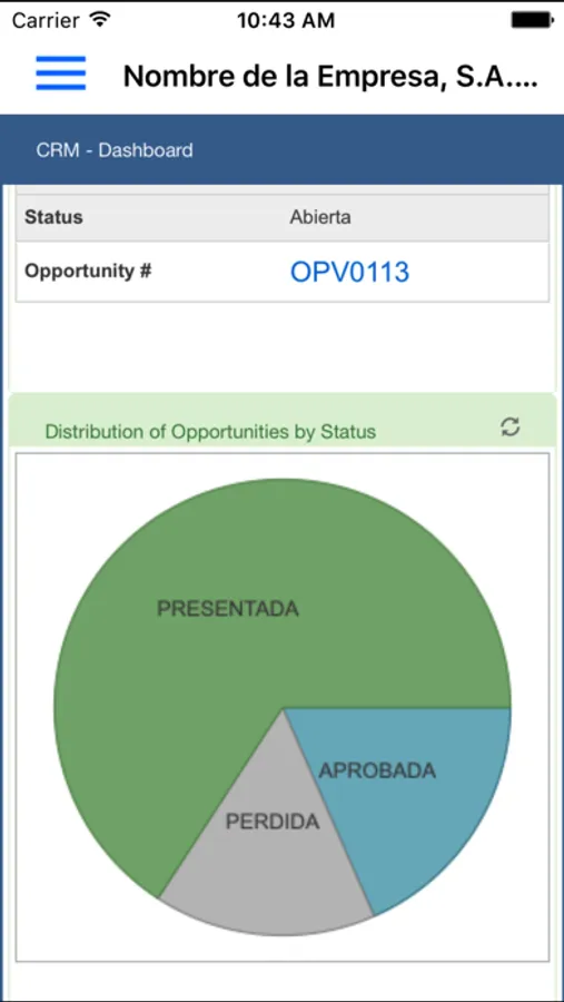 - Oportunidades de Venta, donde podras gestionar nuevas oportunidades y llevar un control de las actuales