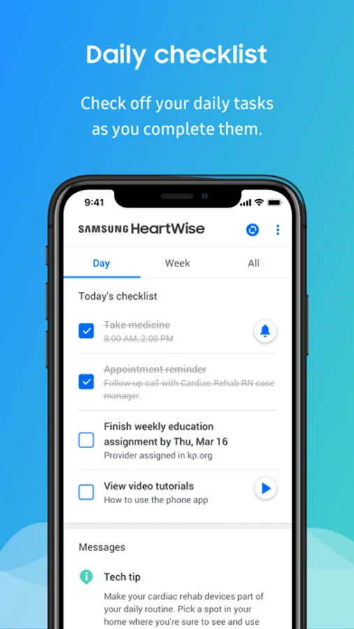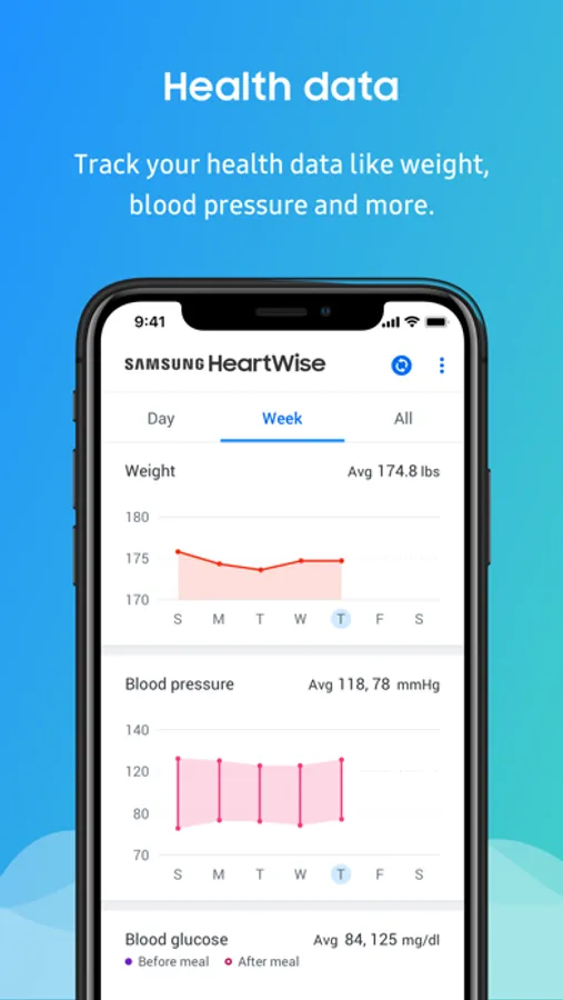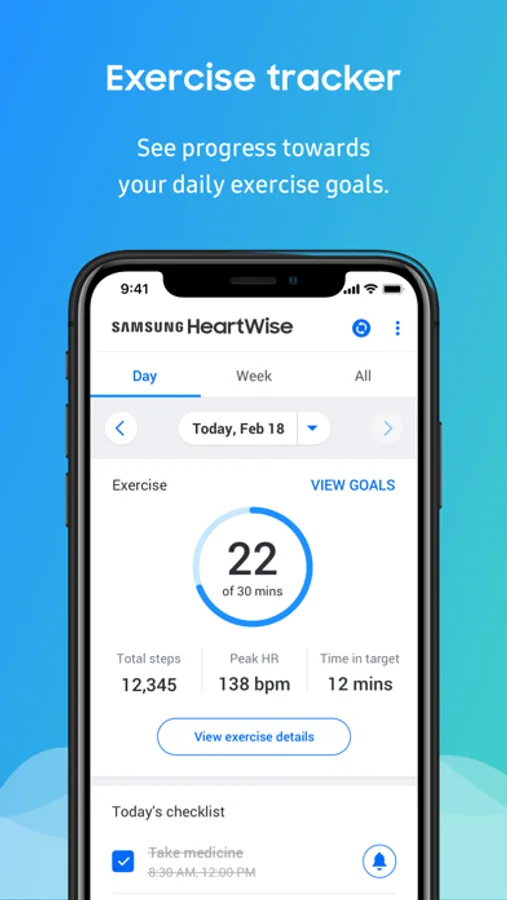 Samsung HeartWise tracks your heart wellness data right on your smartphone and automatically sends it to your clinical team. It makes your heart wellness program easy and convenient.