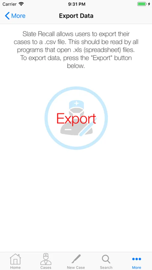 - Your database of cases can be exported to a spreadsheet, which can be emailed or sent via iMessage.