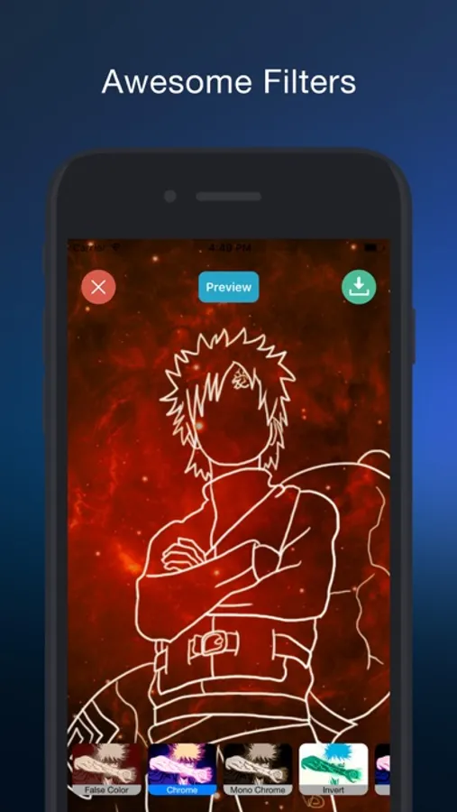 Provide 100+ HD Naruto Wallpapers: Naruto, Gaara, Pain/Nagato, Itachi, Tsunade, Sasuke, Rock Lee, Kabuto, Iruka… all characters, everything about Naruto. With many style: Shadow Naruto Wallpaper, Art Naruto Wallpaper, Funny Naruto Wallpaper, Chibi Naruto Wallpaper... This app was designed for easy using and Optimized battery usage.