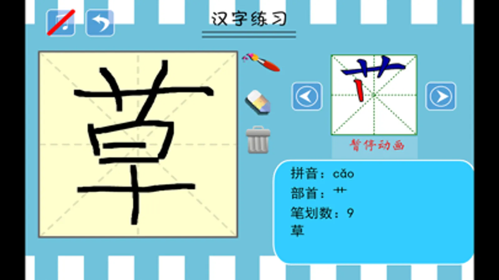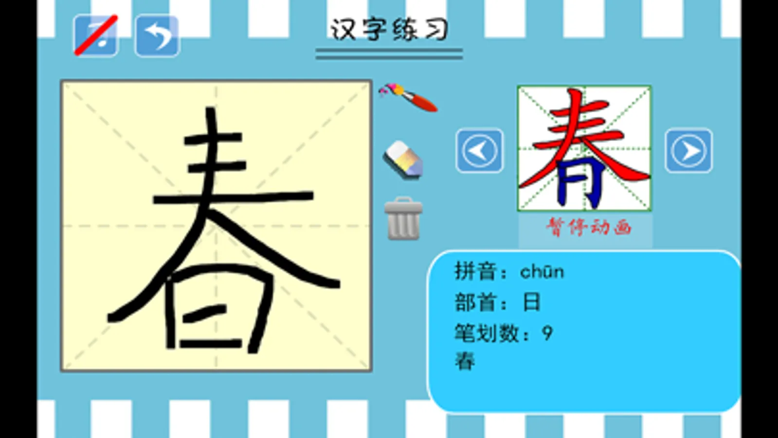 1、笔顺动画,以动画形式演示给孩子看字的书写过程。
