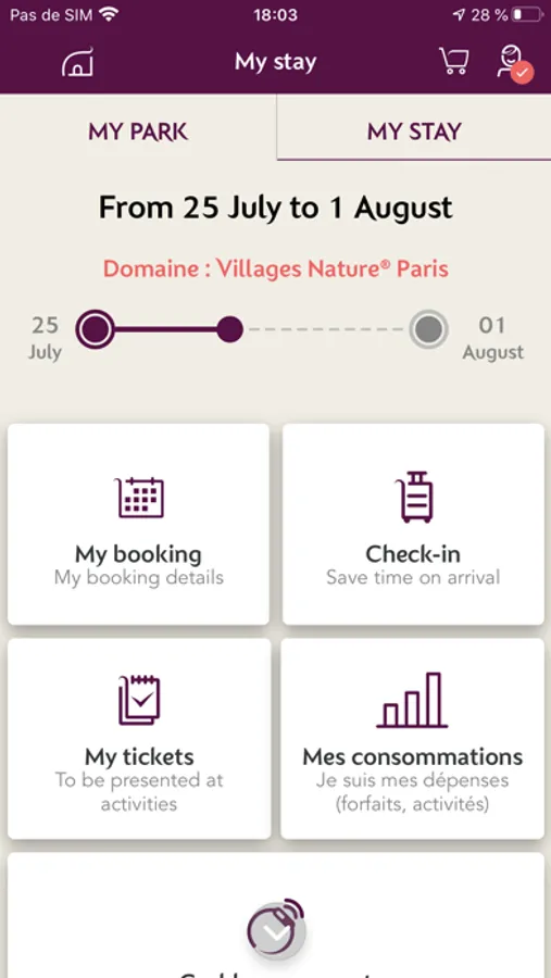 - Check all the information relating to your stay at a glance