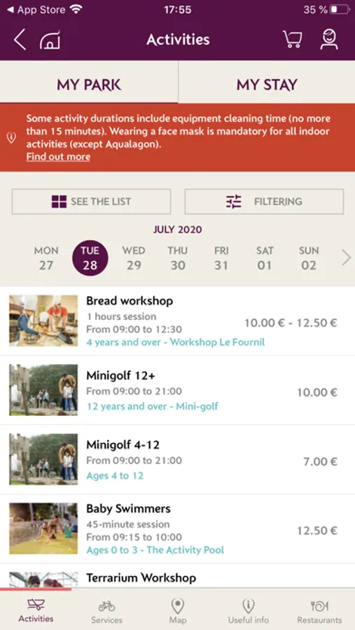 - Better organise your stay by checking and booking your activities