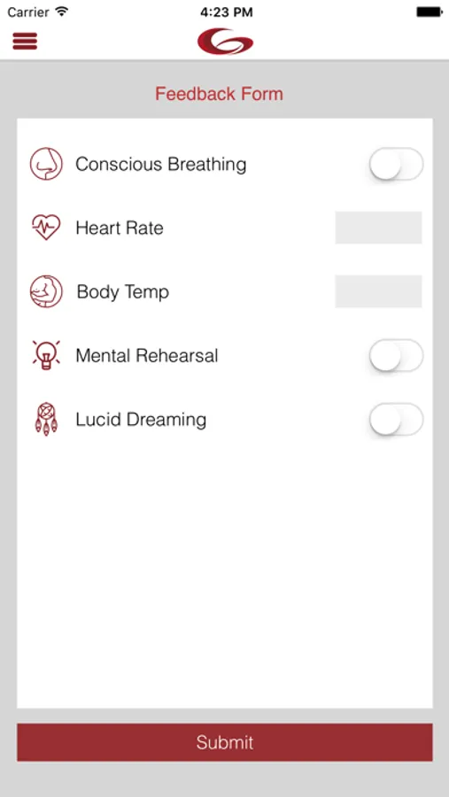 Can combined biofeedback and mental rehearsal enhance sport performance? This app is an attempt to articulate both this question and the potential responses while including conscious breathing, heart rate, body temperate (both biofeedback mechanisms), mental rehearsal and lucid dreaming, an extension of mental rehearsal but in an alpha and theta brain wave state. The athlete can use this app to track each of these 5 which overtime should help enhance both the training and then the competition and performance.